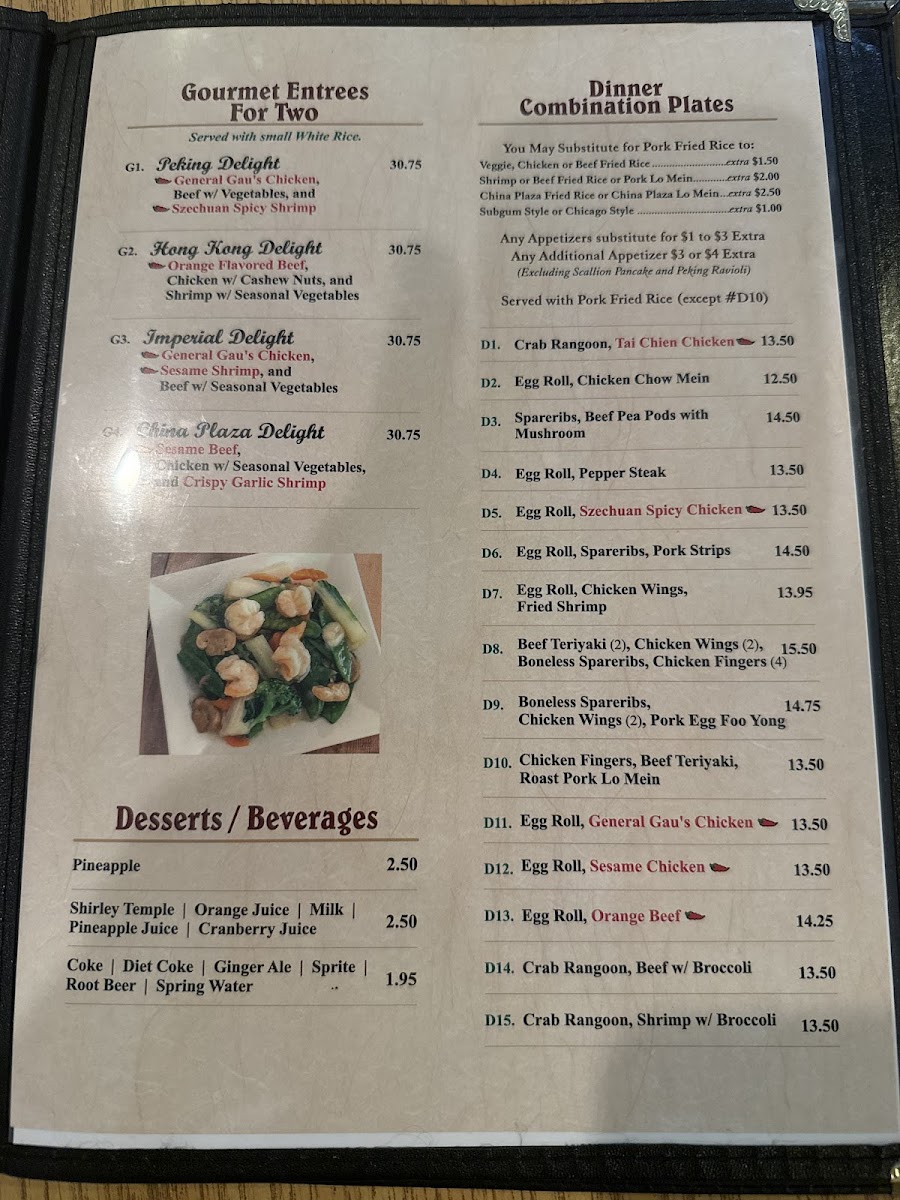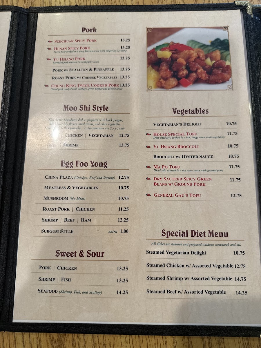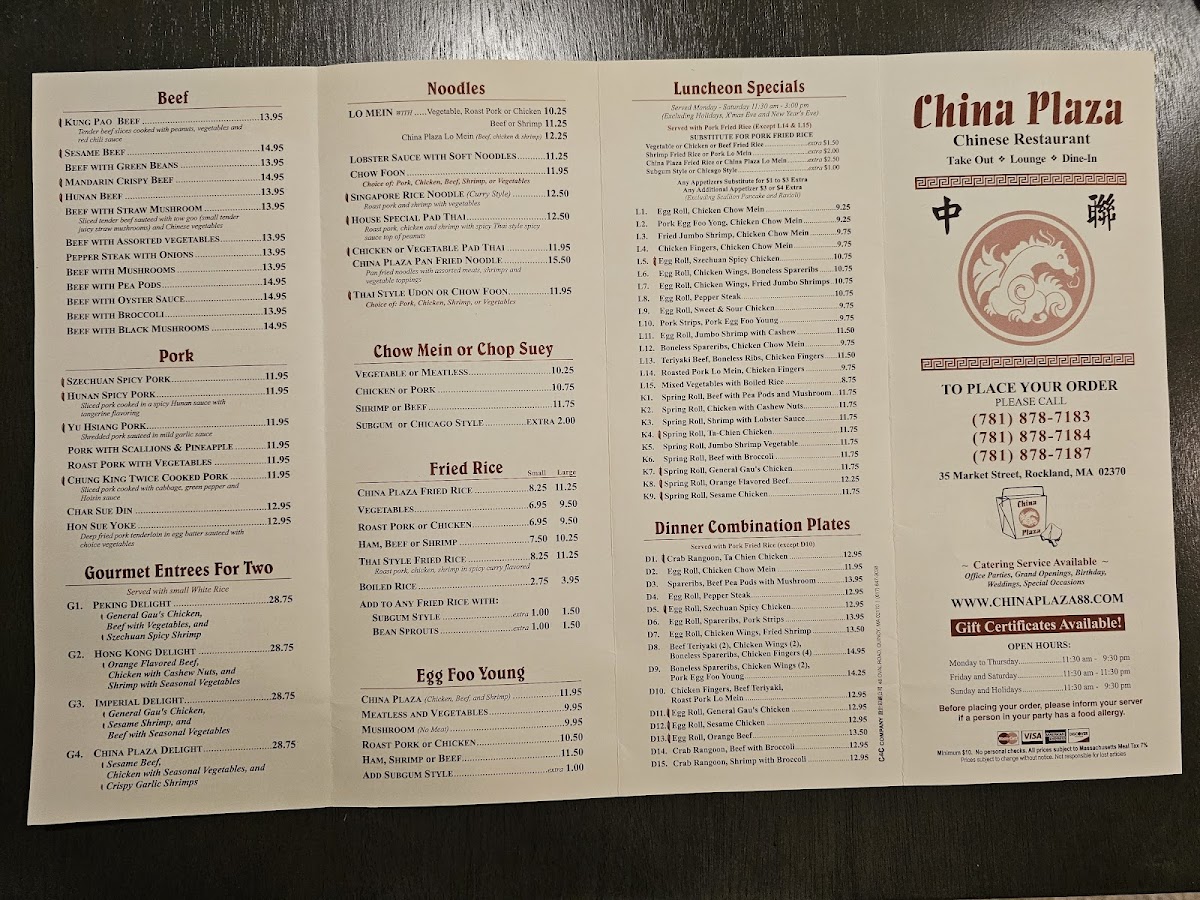 The menu at China Plaza offers a straightforward and inviting selection of Chinese classics, ideal for casual dining or a relaxed night out. With comforting, familiar dishes like Sesame Chicken, Szechuan Orange Chicken, and Pork Fried Rice, the menu leans into satisfying flavors that appeal to both regulars and those new to Chinese cuisine.