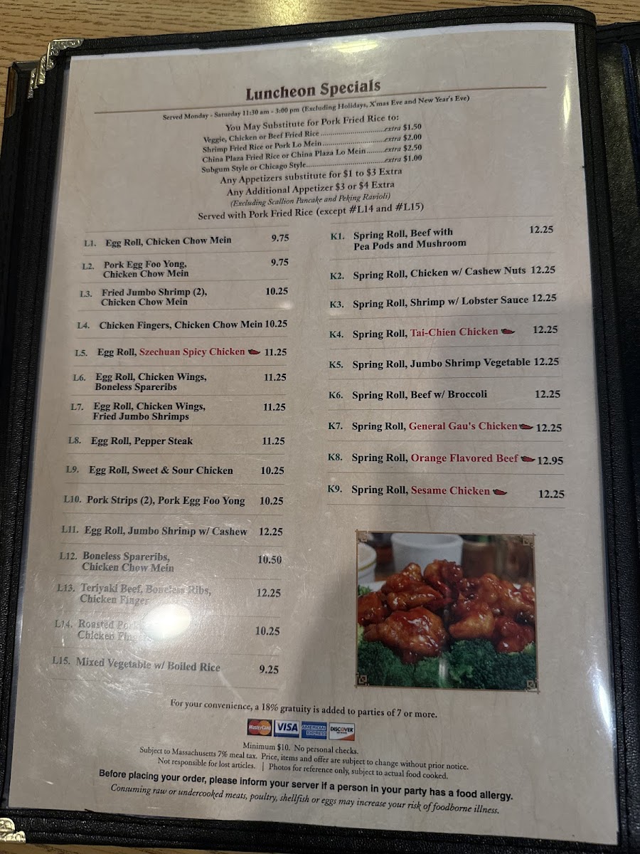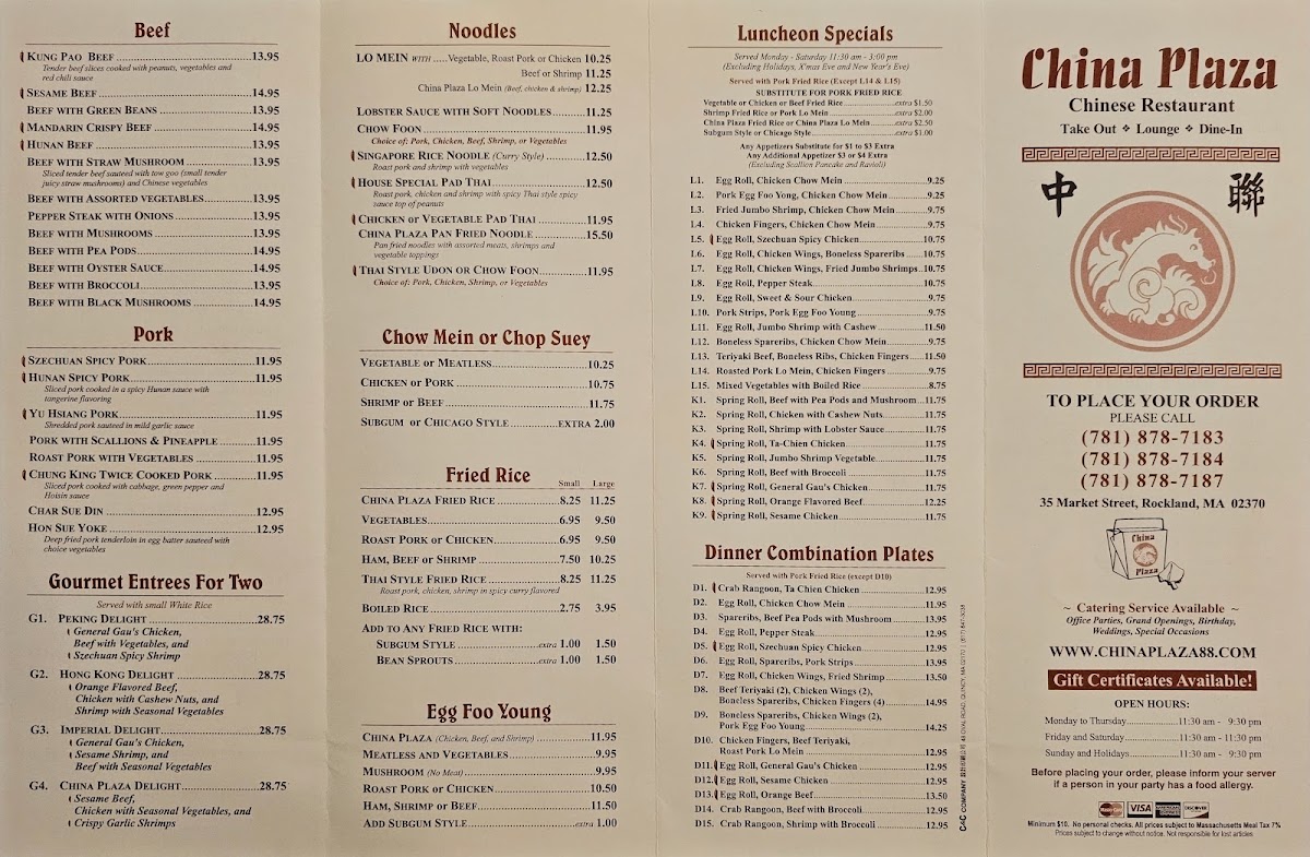 China Plaza Menu